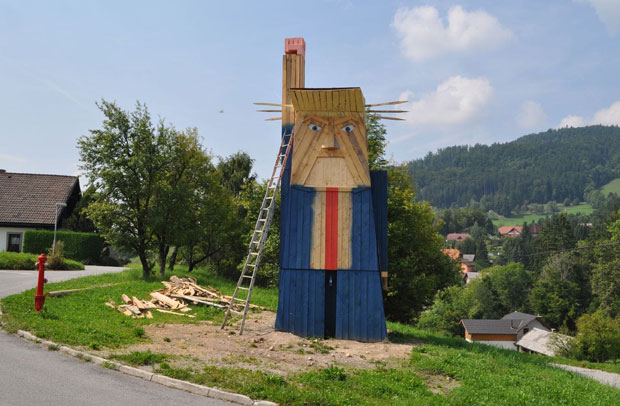 POGLEDAJTE: Kockasta drvena statua Trampa gleda ka Melanijinom selu (FOTO)