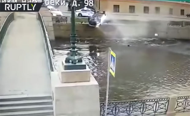 Cela situacija, koja više podseća na neki akcioni film, snimila je obližnja nadzorna kamera. U videu se može videti kako se brzi „hjundai solaris“ kreće prema malom mostu preko reke Mojke, u centru Sankt Peterburga.