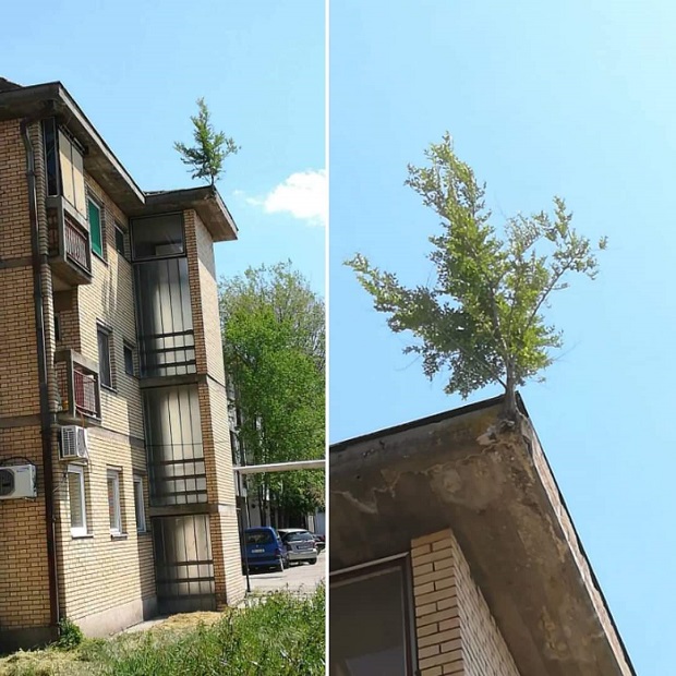 Da li ga je neko zasadio, ili je sam iznikao, nije poznato ni stanarima zgrade, čiji ravan krov ukrašava na prijatnom prolećnom suncu