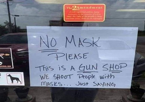 - Molimo vas da ne nosite maske. Ovo je prodavnica oružja, mi pucamo u maskirane ljude... Samo kažemo - stoji na ulazu jedne radnje u SAD.