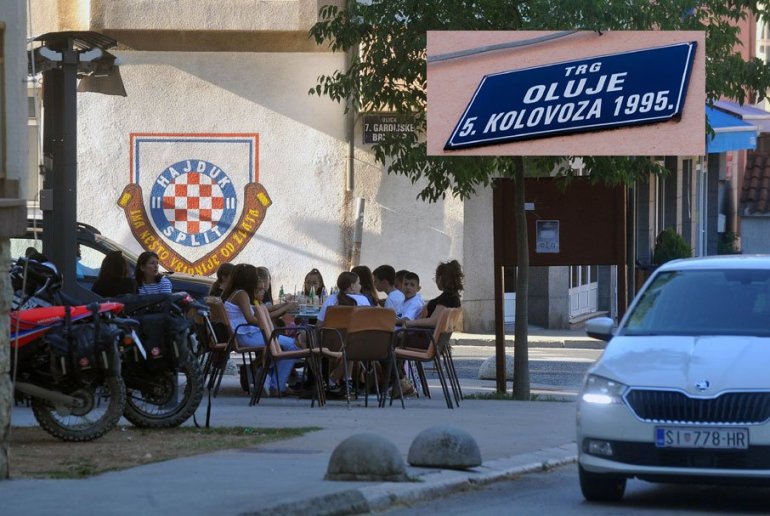 Odgovor na isto pitanje potražili smo i od naših mladih sunarodnika u Kninu. Okupljaju se u jednom kafiću na Terazijama, kako nazivaju centar grada. Ali, dok sede u njemu, neminovno gledaju u kružni tok u koji se utapaju tri ulice - "Franje Tuđmana", "7. gardijske brigade", one čiji su pripadnici razvili hrvatsku zastavu na kninskoj tvrđavi, i "5. kolovoza", po datumu kada su to učinili. A, "Terazije" su zvanično Trg "Oluje".