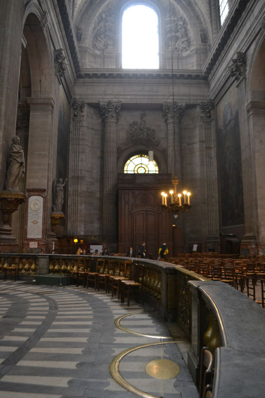 Da se više ne bi nagađalo i polemisalo oko tačnog datuma početka Uskrsa po ovdašnjem kalendaru, župnik pariske crkve Sen Silpis, Žan Žozef Lange de Žerži, poverio je, 1728. godine, čuvenom engleskom sajdžiji i astronomu Herniju de Saliju da, unutar ovog zdanja, konstruiše gnomon, optički pokazivač paralelan s osom rotacije planete Zemlje.