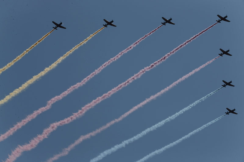 U svečanom defileu na Tjenanmenu učestvovalo je 12.000 pripadnika kineske vojske, oko 1.000 vojnika iz 17 drugih država, među kojima i gardisti Vojske Srbije, a Peking je nadletalo 200 borbenih aviona.