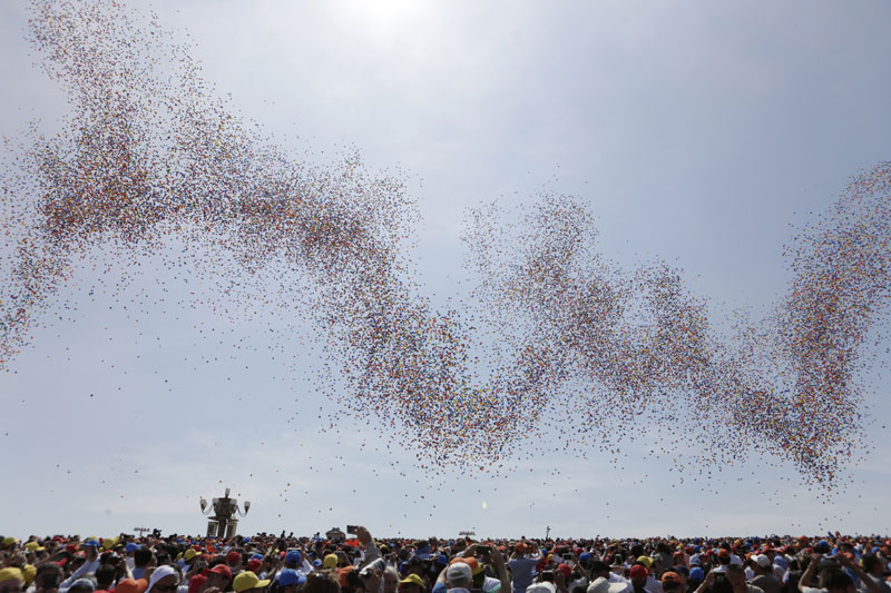 Pored njega su bili i strani zvaničnici, među kojima ruski predsednik Vladimir Putin, južnokorejska predsednica Park Geun-hje i generalni sekretar Un Ban Ki Mun.