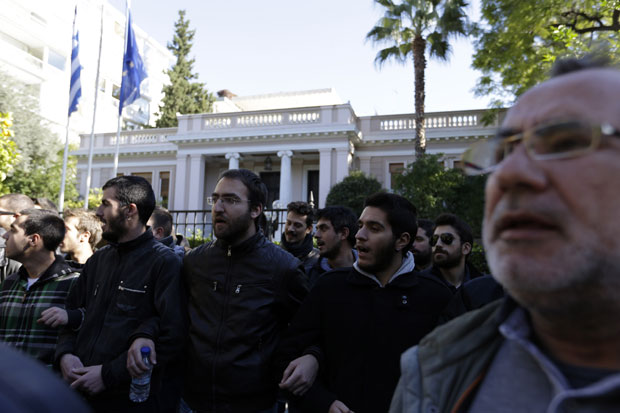 Protest oko 2.000 ljudi je organizovao jedan od državnih sindikata koji se ne slaže sa povećanjem doprinosa na plate, što je deo paketa mera na koje je grčka vlada pristala da bi dobila zajmove da spase privredu.