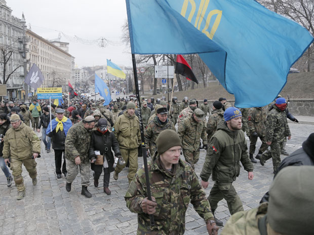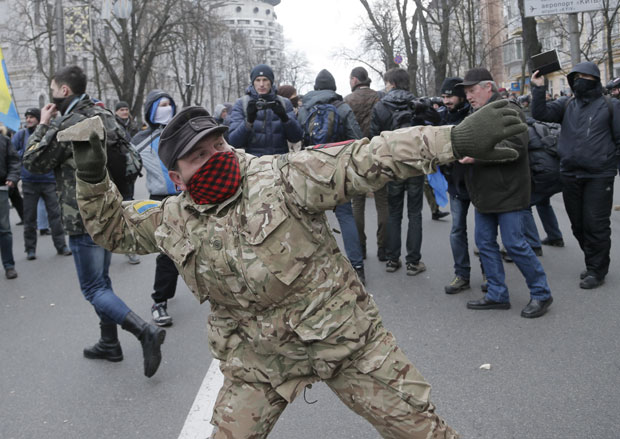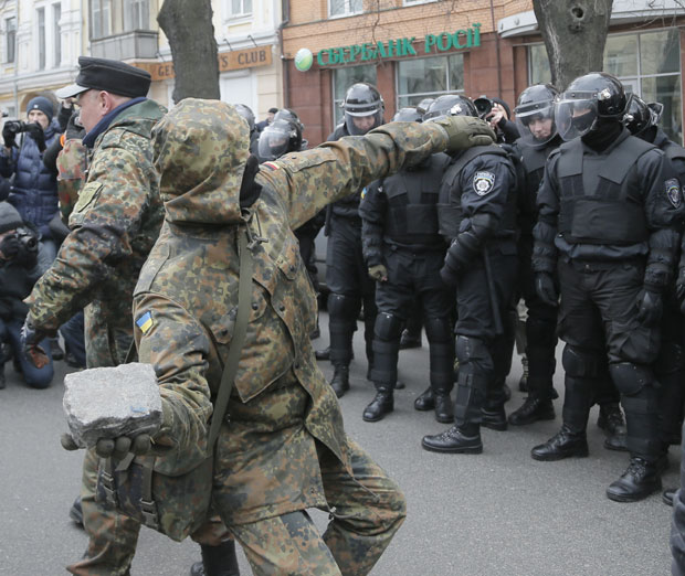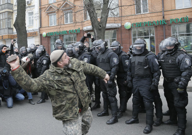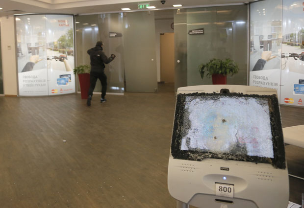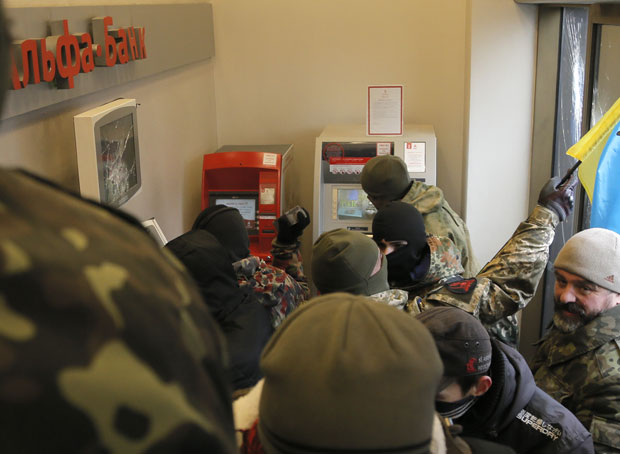 Ukrajinski nacionalisti napali su danas dve ruske banke u Kijevu tokom obeležavanja druge godišnjice protesta kojim je svrgnut proruski predsednik Vikor Janukovič