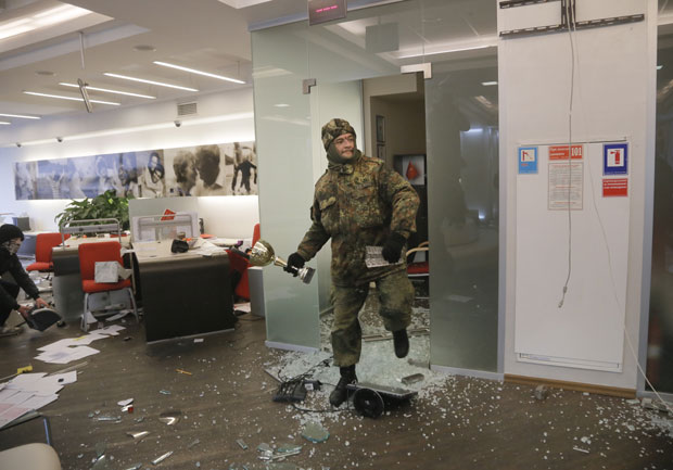 Na demonstracijama u Kijevu napadnute dve ruske banke