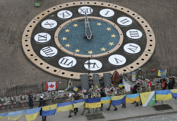 Desetine hiljada ljudi okupilo se danas na različitim skupovima obeležavanja demonstracija koje su kulminirale odlaskom Janukoviča.