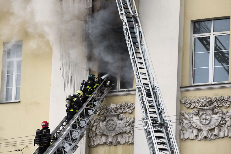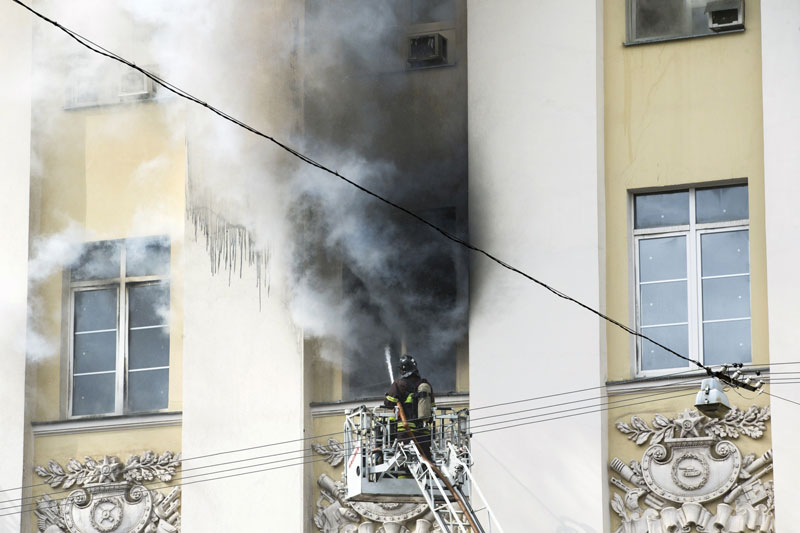Rusko Ministarstvo za vanredne situacije poslalo je potom više od 250 ljudi, 72 vozila, uključujući 17 pokretnih merdevina. Podataka o eventualnim žrtvama nije bilo, a materijalna šteta je velika. Vatrogasci su iz zgrade evakuisali 50 ljudi koji su bili na poslu.