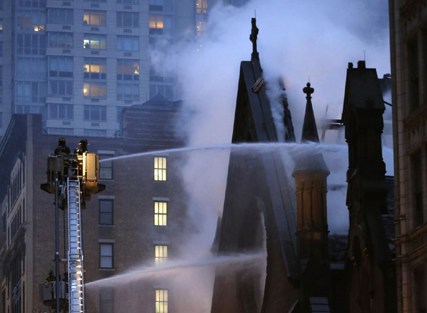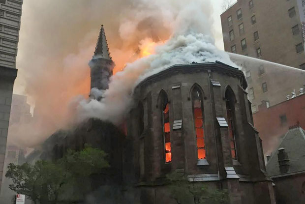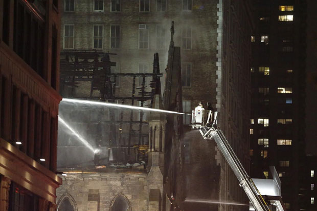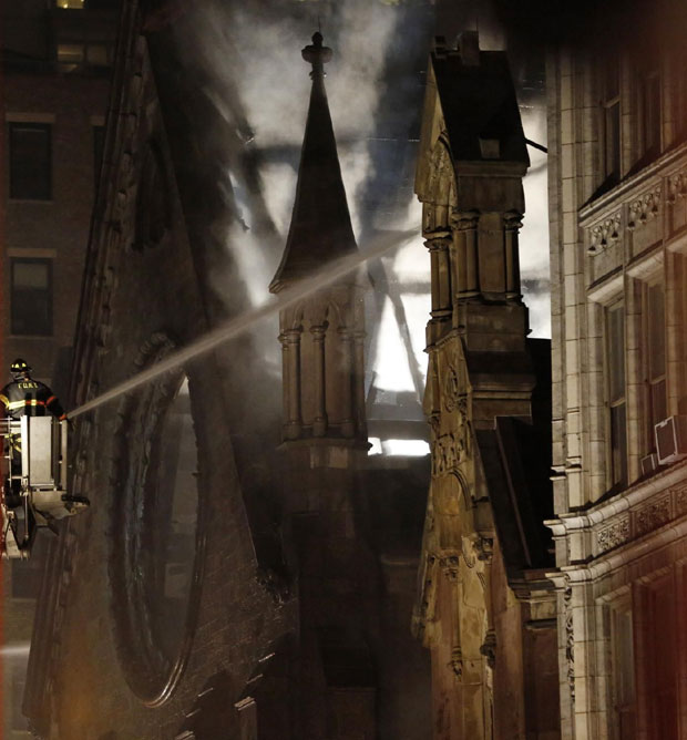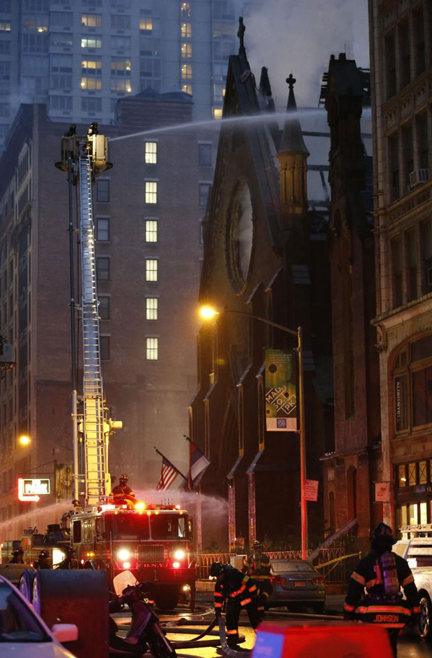 Vatrogasna služba Njujorka objavila je da je krov crkve izgoreo u potpunosti, ali i da je struktura zgrade postala nestabilna. Portparol Frenk Gribon rekao je posle intervencije "da se čini da uzroci požara nisu sumnjivi".