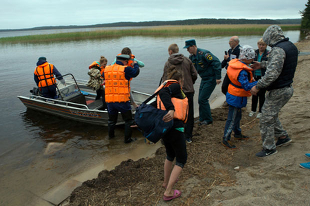 OPERACIJA spasavanja dece na jezeru Sjamozeru u Kareliji, gde je oluja u subotu prevrnula čamce u kojima su se nalazili mladi polaznici škole preživljavanja, počela je čak 20 sati posle nesreće. U hladnoj jezerskoj vodi se podavilo 13 dece, dok se jedan muškarac vodi kao nestao. To je izjavio gubernator Karelije Aleksandar Hudilajnen. Tela poginule dece su u ponedeljak ujutro prebačena avionom u Moskvu, gde je proglašen dan žalosti. Odmaralište u kojem su bila nastradala deca u ponedeljak je već zatvoreno, a svi gosti su vraćeni kući u Moskvu.