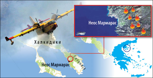 Lokalizovanje požara trajalo je duže od četiri sata, jer je buknuo u šumi, a vatra je zahvatila i nisko rastinje. Gasilo ga je pet aviona i dva helikoptera. Temperatura iznad 30 stepeni, suša i jak vetar otežali su rad 30 vatrogasaca. Inače, prve zgrada u Marmarasu nalaze se svega kilometar od šume koja je bila u plamenu. Mediji su u prvom mahu preneli da je veliki broj srpskih i makedonskih turista zarobljen na plaži, jer se vatra proširila do samog puta.
