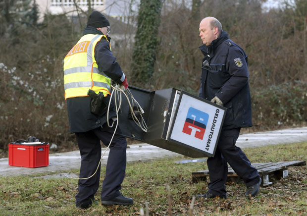 Teretni voz delimično je danas iskočio iz šina nakon što je udario u ukradeni bankomat ostavljen na šinama na zapadu Nemačke, saopštila je policija.