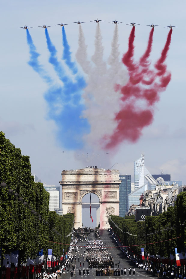 U vojnom defileu učestvovali su svi rodovi francuske vojske, pešadija, motorizovane trupe, konjica i vazdušne snage, pripadnici žandarmerije, policije, republikanske garde, vatrogasci, legionari. Marširalo je 3.720 ljudi u uniformama, a Jelisejskim poljima je prošlo 211 vozila i 241 konjanik, dok je iznad proletelo 29 helikoptera.
