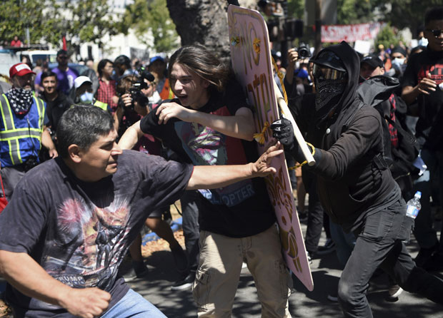 Mirni protesti u Berkliju, kod San Franciska, postali su nasilni u nedelju oko podne po lokalnom vremenu, nakon što su anarhisti obučeni u crno preskočili policijske barikade i napali nekoliko Trampovih pristalica koji su se pojavili na protestu pod nazivom "Ne marksizmu u Americi", iako je taj skup prethodno otkazan upravo zbog straha od nasilja.