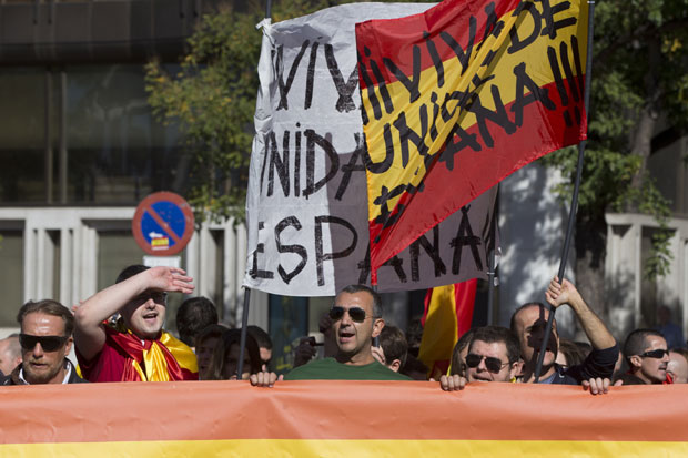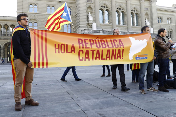 Ovaj dnevnik i agencija AP ističu da je Pudždemon tokom kratkog televizijskog obraćanja putem regionalne televizije TV3, koje je trajalo svega tri minuta, stajao iza zastava Katalonije i Evropske unije i da nije bilo zastave Španije.