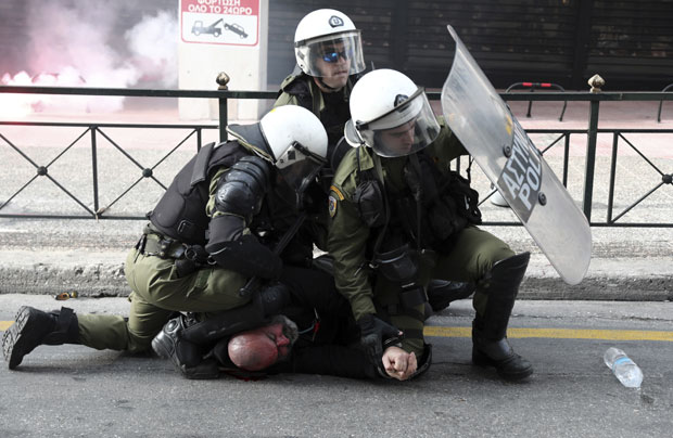 ATINA je u nedelju vrila u protestima. U grčkoj prestonici čitavog dana trajale su masovne demonstracije zbog potencijalnog kompromisa Grčke sa vlastima u Skoplju oko zvaničnog imena Makedonije. U svet su poslate stravične slike prizora žestokih sukoba građana i policije - krvave glave, ljudi oboreni na asfalt na čijim telima bukvalno kleče policajci sprečavajući ih da učestvuju u protestu.