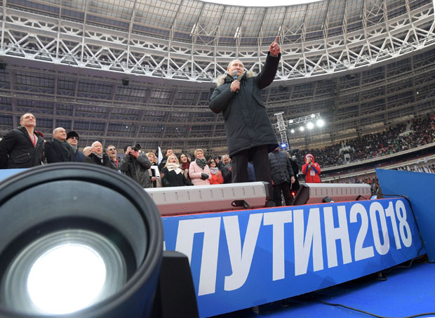 Miting podrške kandidatu za predsednika Rusije Vladimiru Putinu održan je na moskovskom stadionu „Lužnjiki“. Na skupu je učestvovalo više od 130.000 ljudi.