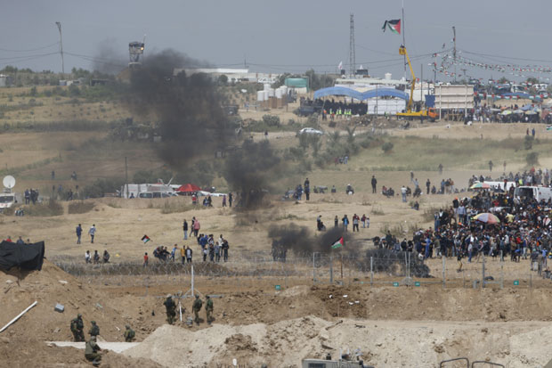 Kako prenosi Rojters, Palestinci su tokom "Velikog marša povratka" bacali kamenje i palili gume u blizini granične ograde.