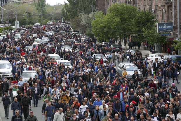 Napetost oko Sirije stavila je u drugi plan svetskih medija događaje u Jermeniji, pa mnogima nije jasno koji je glavni razlog nereda u toj zemlji burne i nesrećne istorije. Prvi sukobi su bili 16. aprila uoči dana kad je tamošnji parlament trebalo da izabere novog premijera. Opozicija je bila protiv toga da se Serž Sargsjan preseli iz predsedničke u premijersku fotelju, pa je došlo do fizičkog obračuna sa policijom. Povređeno je više od 40 ljudi, među njima organizator protesta Nikol Pašinjan, kao i petoro policajaca. Sargsjanu je predsednički mandat istekao devetog aprila, ali on je nameravao da se prebaci, na sada važniju, funkciju premijera.