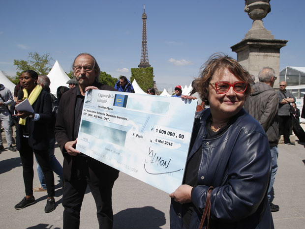 Grupa pisaca, profesora i umetnika koja je ranije pokrenula internet sajt za finansijsku podršku štrajkačima, uručila je tim sindikatima ček na milion evra tokom protesta.