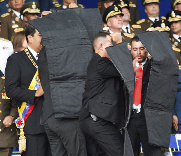 Bezbednosni stručnjaci neutralisali su jedan dron koji je leteo prema bini dok se Maduro obraćao na vojnoj paradi, dok je drugi dron udario u obližnju zgradu i eksplodirao.
