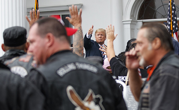 Nakon oštrih kritika, Tramp se, kako navodi AP, oraspoložio i dočekao bajkere uzvikujući "još četiri godine", misleći na svoj drugi mandat.
