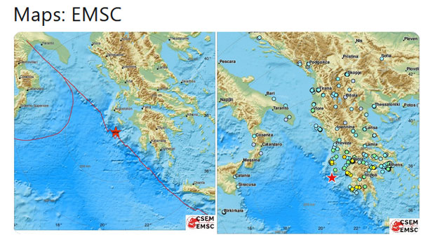 Grčki Zavod za geodinamiku saopštio je da je potres jačine 6,4 stepena, koji je registrovan u 01:54 sati po lokalnom vremenu, pogodio oblast oko 50 kilometara južno od Zakintosa, nakon čega je usledio niz umerenih naknadnih potresa.