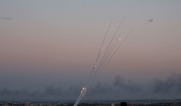 Izraelska vojska je na baražnu vatru, preko sto projektila za samo jedan sat, odgovorila udarima iz vazduha na preko 30 "terorističkih meta" širom pojasa Gaze, uključujući vojne komplekse i osmatračnice.