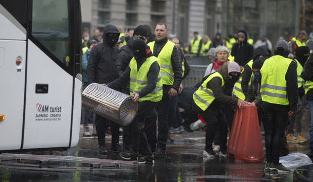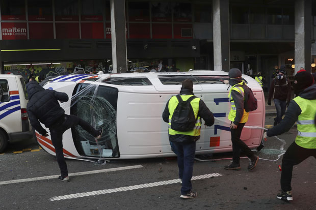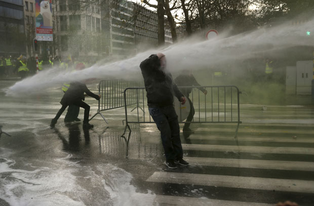 Briselska policija upotrebila je vodene topove i suzavac kako bi zaustavila učesnike protesta protiv visokih poreza i troškova života, koji su kamenjem gađali kancelariju premijera Šarla Mišela