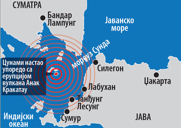 Strahovita prirodna katastrofa pogodila Indoneziju između ostrva Jave i Sumatre. n Povređeno gotovo 850 Indonežana i turista. Okidač bila erupcija vulkana