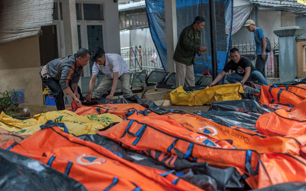 Cunami je pogodio plaže oko Sundskog prolaza, između Jave i Sumatre, nakon što je pokrenuto podvodno klizište izazvano erupcijom vulkana.