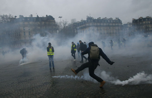 Na današnjim demonstrancijama privedeno je najmanje 52 ljudi u Parizu, gde je došlo do sukoba sa policijom na Trgu Bastilje, a zatim i na Trgu Republike, a nakratko je, u Bordou, priveden i jedan od lidera "Žutih prsluka" Maksim Nikol, prenosi portal Franceinfo.