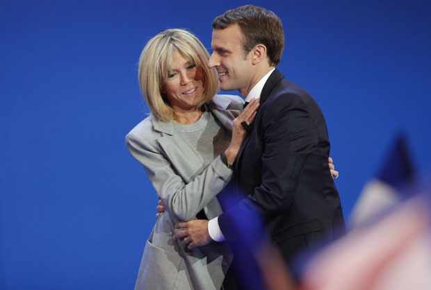 ONI koji poznaju predsednički par ističu i da Brižit, koja će u aprilu napuniti 66 godina, utiče "iz senke" na svog 24 godine mlađeg muža, i da mu, kao profesor francuskog jezika, koriguje delove govora. Ona je svom suprugu svojevremeno bila nastavnica, kada su se i zaljubili jedno u drugo.