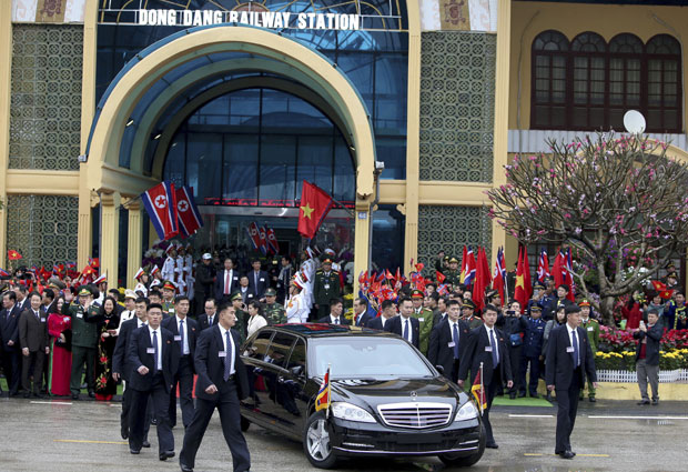 Lider Severne Koreje doputovao je svojim specijalnim zeleno-žutim oklopnim vozom do stanice Dong Dang, na kinesko-vijetnamskoj granici i potom je do Hanoja nastavio put crnom limuzinom marke "mercedes".