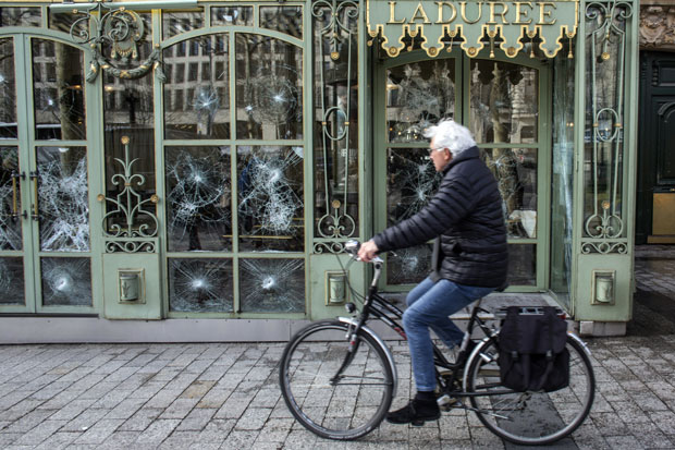 Dan nakon pljački i požara, luksuzne radnje, restorani i banke vršili su procenu štete, dok su turisti fotografisali vlasnike radnji koji pokušavaju da poprave slomljene prozore, a gradski radnici brisali grafite, većinom usmrene protiv francuskog predsednika Emanuela Makrona.