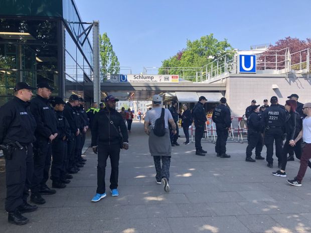 Demos am #tagderarbeit in #Hamburg. Pegida aus München plant Dauerkundgebung am #Schlump. Vorbereitungen laufen. Die @PolizeiHamburg ist auch schon vor Ort. pic.twitter.com/2V2L5JxG0V