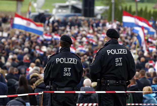 Skup su, inače, nadletala dva helikoptera, a organizatori su ove godine odlučili da osim verskog dela nema ni političkih govora. Naime, austrijska policija je uoči okupljanja u Blajburgu saoštila da po odredbama Zakona o javnom okupljanju može prekinuti skup ako bude provokacija.