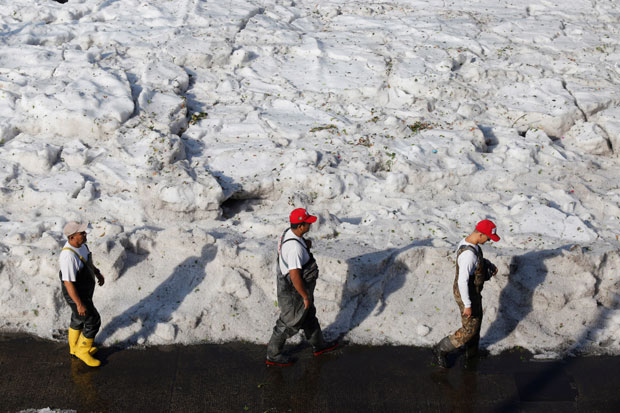 Šest predgrađa meksičkog grada Gvadalahare prekriveno je debelim slojem leda, nakon što je taj grad pogodila snažna oluja sa gradom.
