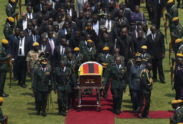 Na ceremoniji su govorili i od Mugabea se oprostili predstavnici porodice, predsednik Zimbabvea Emerson Mnangagva, predsednici Kenije, Evkatorijalne Gvineje i Juznoafričke Republike, potpredsednica Tanzanije, bivši predsednici Gane i Namibije, kao i specijalni izaslanik predsednika Kine Gu Šengu, potpredsednica Kube Ines Marija Čapmen Vo i ambasador Ruske Federacije u Zimbabveu.
