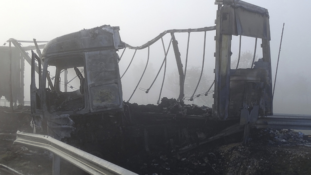 "Kamion je iščupao zaštitnu ogradu i sudario se sa dva automobila na suprotnoj traci. Sva tri vozila su se zapalila, a putnici iz automobila su poginuli na licu mesta", navodi mađarska policija. U objavi se ne navodi odakle su dolazila vozila koja su učestvovala u sudaru.