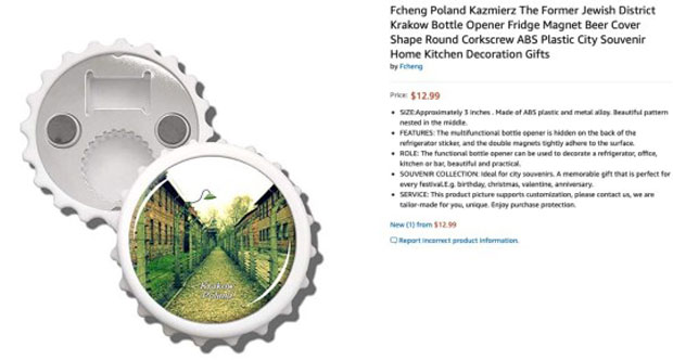 Osim "ukrasa" za novogodišnju jelku, slike logora smrti iz Drugog svetskog rata bile su na otvaračima za boce i na podozi za kompjuterski miš.