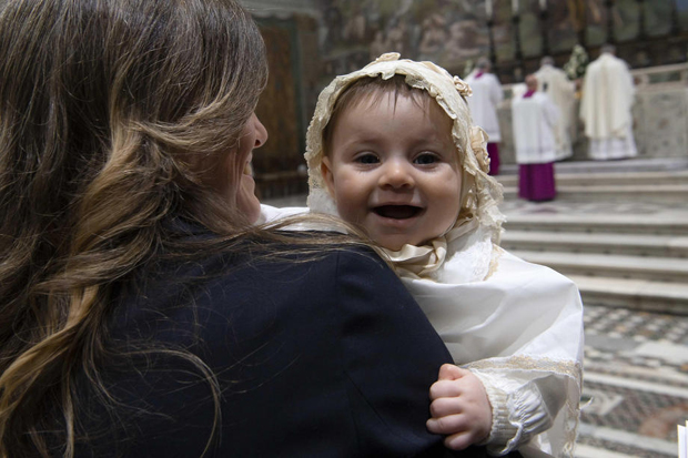Papa je začuđeno primetio da su bebe bilo vrlo tihe i da nisu pustile skoro ni glas dok su čekale na svoj red da budu krštene pod svodom kapele koji je oslikao Mikelanđelo.