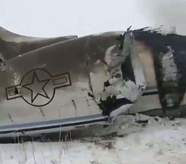 Ocigledno da je ovaj avion marke Bombardier vlasnistvo agencije CIA,jer je po pisanju Francuske novinske agencije,u njemu poginuo visoki operativac ove agencijeMajk De Andrea,poznat po nadimku Ajatola Majk,koji je organizovao likvidaciju nacelnika vojnog staba Hezbolaha,Qassem Sli Manija,2013.g.Interesantno je kako mestani u cipelama,po dubokom snegu,snimaju avion dok gori.