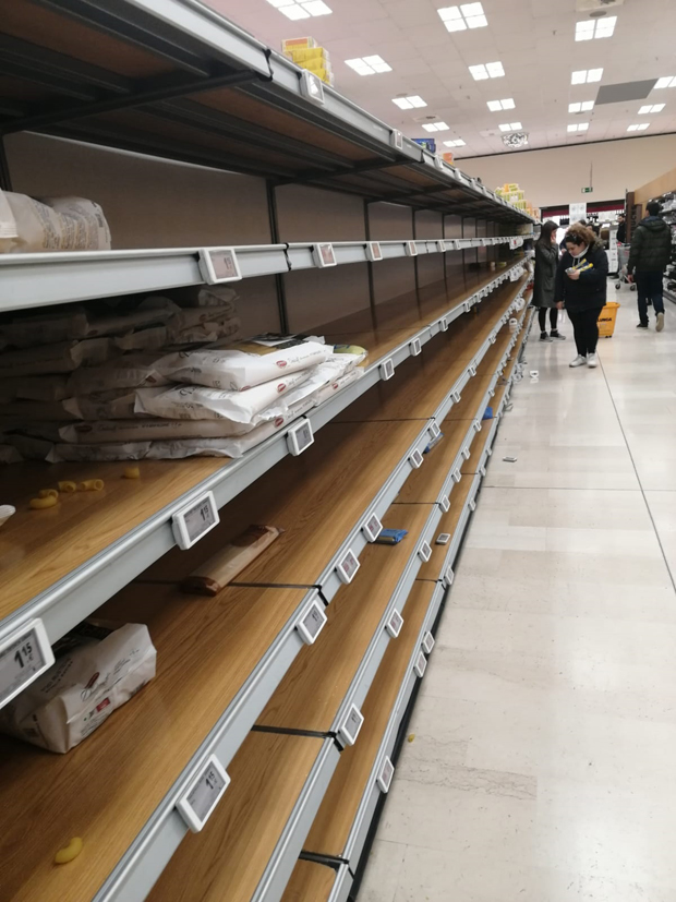 Ispražnjeni rafovi u Milanu i prepune korpe u samoposlugama na severu Italije Claudio Furlan/Lapresse via AP
