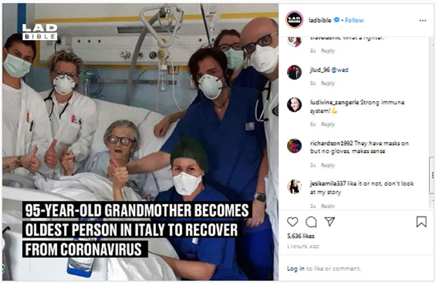 U moru loših informacija koje nam svakog dana stižu iz Italije, pojavila se i jedna lepa vest, da je baka od 95 godina pobedila bitku sa virusom korona