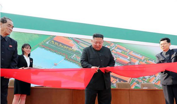 Kim je, kako navodi KCNA, presekao crvenu traku na ceremoniji otvaranja hemijske fabrike,m a prisutni su "gromoglasno uzviknuli "ura" i tako pozdravili vrhovnog vođu".