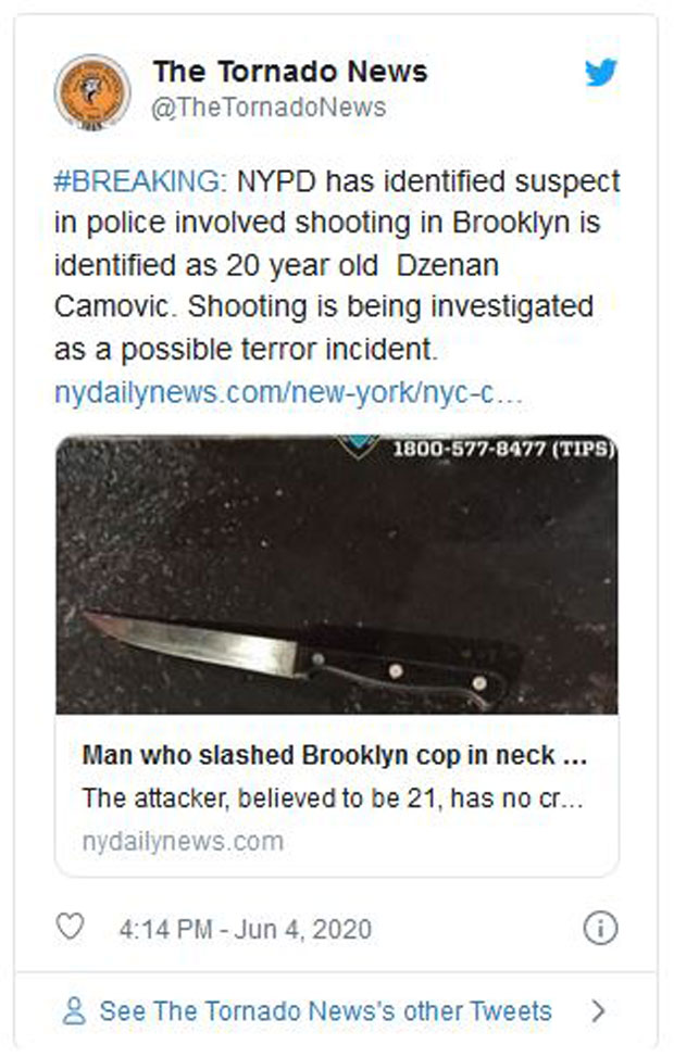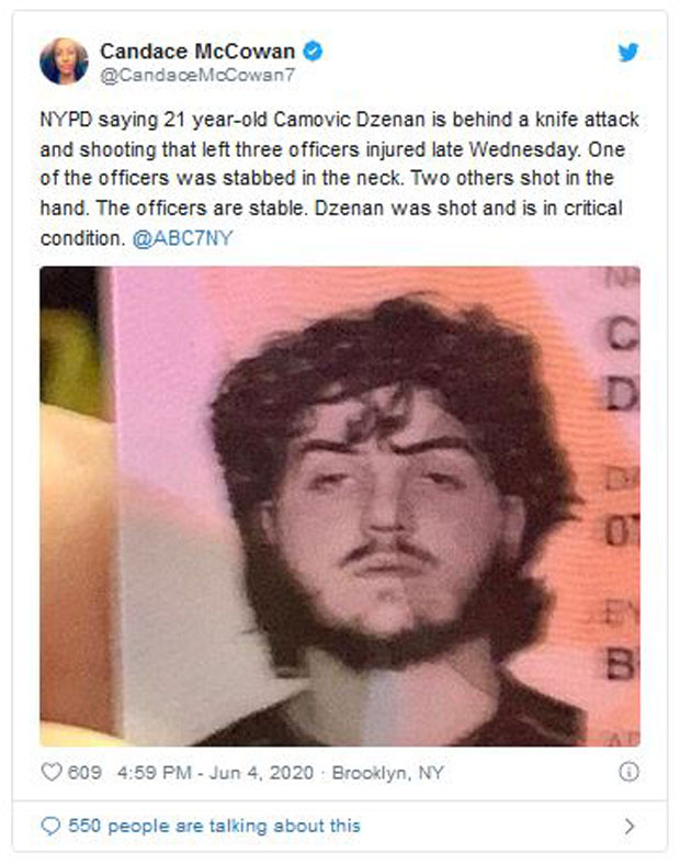 Nakon napada nožem na policiju u Bruklinu, teško je ranjen 20-godišnji muškarac. Iz policije su saopštili da se radi o Dženanu Čamoviću poreklom iz BiH.