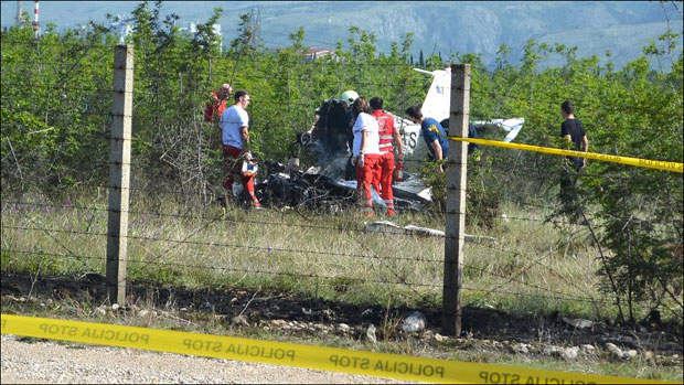 U padu aviona, koji je leteo u okviru "Dana otvorenih vrata" mostarskog aerodroma, u subotu su poginuli pilot-instruktor Ivan Karačić, Muhamed Sipović (20) i troje dece radnika mostarskog aerodroma i to brat i sestra Lana (11) i Luka Lovrić (8), te Arman Hadžiomerović (8).