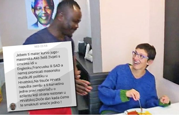 “Na hiljadu Hrvata napušta zemlju a ti k.... jedna pravi reportažu o azilantu koji otvara restoran u Hrvatskoj. Doće će dan kada ćemo te smaknuti smeće jedno!”, napisano je u poruci.